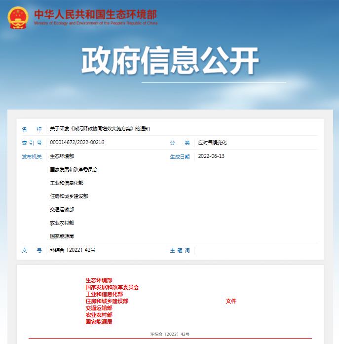 《减污降碳协同增效实施方案》已经碳达峰碳中和工作领导小组同意,现印发给你们,请结合实际认真贯彻落实。