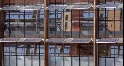 光伏遮阳板是一个实用和兼具发电功能的建筑构件(配件)。但本图的设计显然仍需改进,提高美观度。