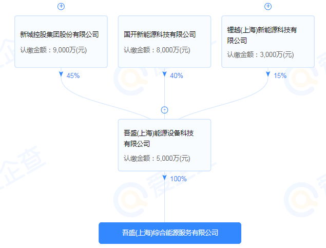 6月17日,吾盛(上海)综合能源服务有限公司注册成立,注册资本为5000万元,由吾盛(上海)能源设备科技有限公司(简称“吾盛能源”)100%控股。