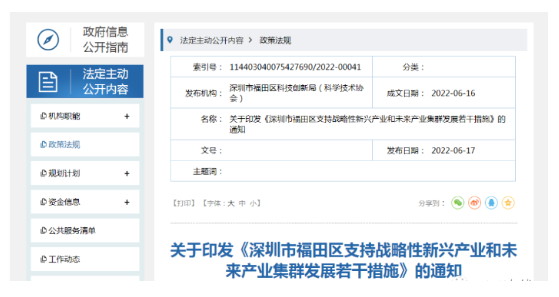 深圳市福田区支持战略性新兴产业和未来产业集群发展若干措施
