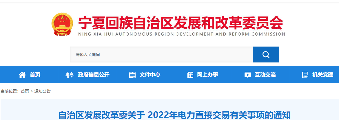 自治区发展改革委关于 2022年电力直接交易有关事项的通知