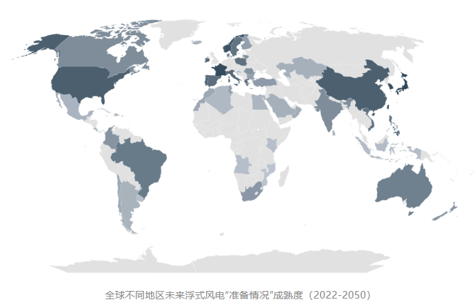 全球不同地区未来浮式风电“准备情况”成熟度(2022-2050)