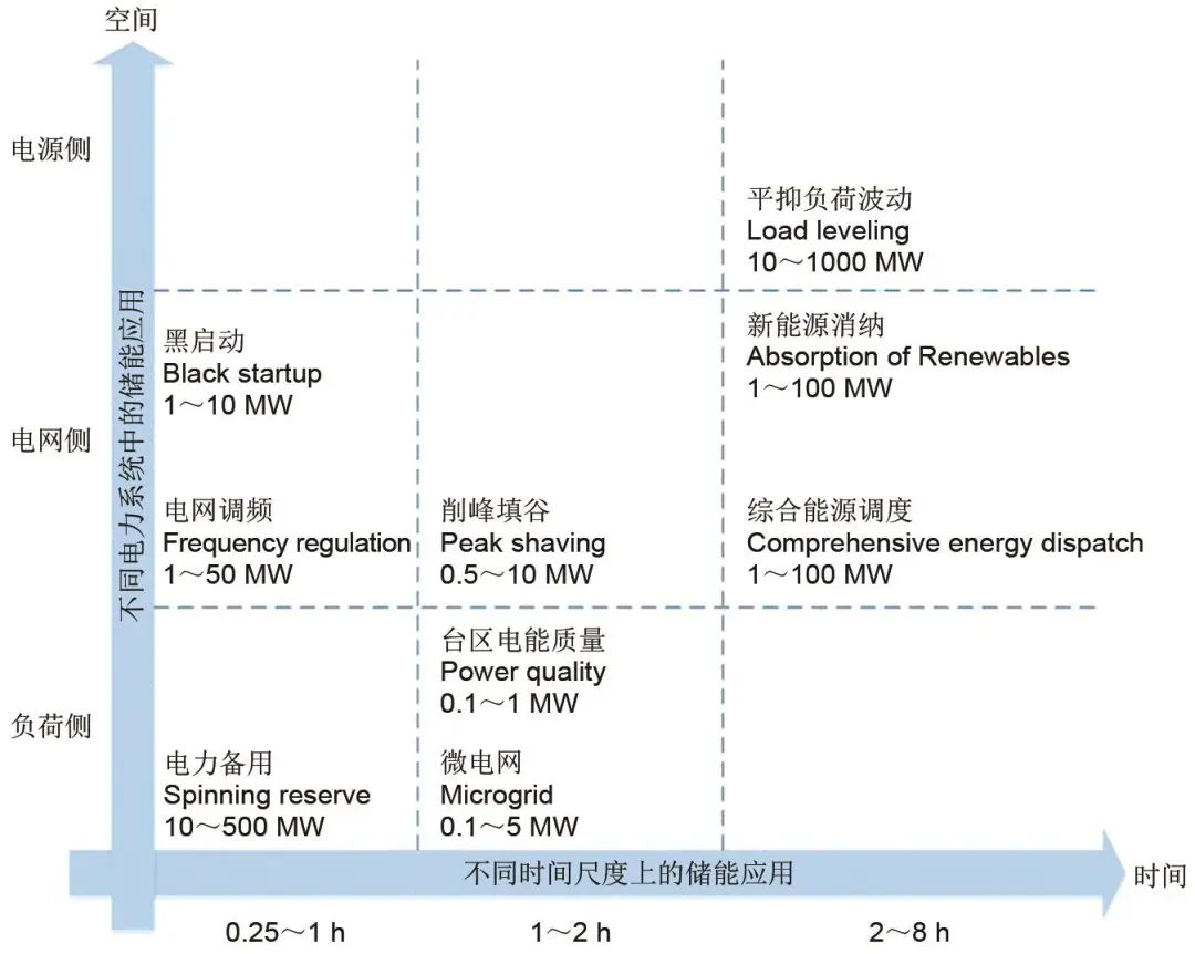 随着人类社会发展、科学技术进步和生活节奏加快,人们对能源消耗的需求持续增强;目前,全球电力消费量超过25万亿千瓦时,人均年用电量约为3400千瓦时/人。按燃料来看,电力生产依靠的燃料主要有石油、煤炭、天然气、核能、可再生能源等;石油、煤炭和天然气等化石燃料依然是生产和生活的重要能量来源;但这些资源都是不可再生资源,而且会产生大量的温室气体,对人类赖以生存的环境产生了恶劣的影响(如全球变暖、动植物多样性锐减等),进而危及人类的生存和发展。因此,需要通过寻求清洁能源发电来突破化石能源的制约。目前,潮汐能、水能、风能、太阳能等清洁、安全且可再生的能源得到了广泛关注和迅速发展,这些能源很大程度上受限于时间、空间、季节和气候变化等因素,尤其风能和太阳能天然具备间歇性和波动性等不足,受制于电网消纳能力,高比例间歇性可再生能源并网不仅会对现有电网稳定性造成冲击,而且还有可能导致弃风、弃光率回升。储能技术的接入,不仅可以降低弃风、弃光率,更能平抑新能源波动,跟踪计划出力,并参与系统调峰调频,增强电网的稳定性。