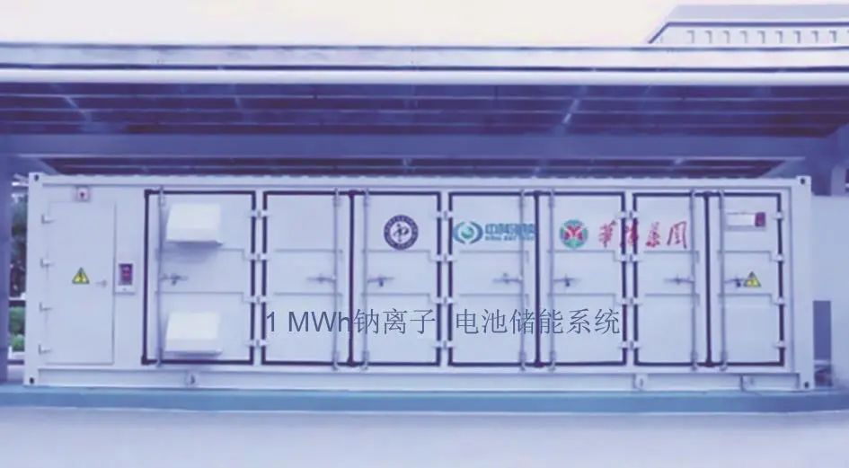 本项目在中国科学院A类战略性先导科技专项“大规模储能关键技术与应用示范项目”的支持下,2021年6月28日,中科海钠联合华阳集团在山西太原综改区联合推出了全球首套1 MWh钠离子电池储能系统(图6),并成功投入运行。该系统以钠离子电池为储能主体,结合市电、光伏和充电设施形成微网系统,可根据需求与公共电网智能互动。
