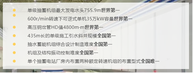 长龙山抽水蓄能电站为“超高水头、高转速、大容量”抽水蓄能电站,承载了多项“世界之最”和“国内首次”,多项设计达到世界领先水平。