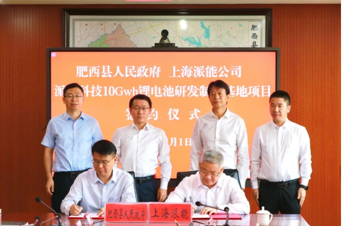 7月1日上午,在肥西县委书记陈伟,中兴新通讯有限公司董事长、上海派能能源科技股份有限公司董事长韦在胜等人的见证下,肥西县委副书记、代县长王新华同上海派能能源科技股份有限公司董事、总裁谈文正式签约,派能科技10Gwh锂电池研发制造基地项目落户肥西。这标志着肥西县三大战新产业之一的新能源全链条产业集群又迈上了一个新高度,同时也弥补了合肥市储能电池领域的空白,对产业链补链、强链具有重要意义。