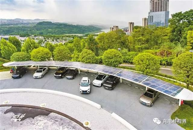 重庆日报消息,7月3日,两江新区悦来美术馆停车场,车辆在光伏充电站充电。该光伏充电站全年发电约15万度,能满足这里14个充电位的用电需求。