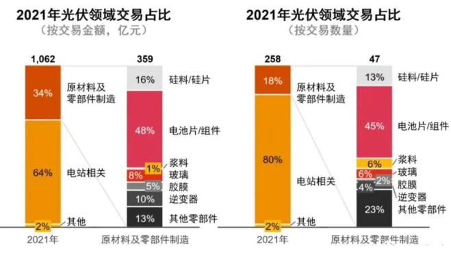 从标的公司类型来看,除了电站资产端的交易,投资人对产业链上游原材料、设备及组件制造商等领域的布局也在不断加深。