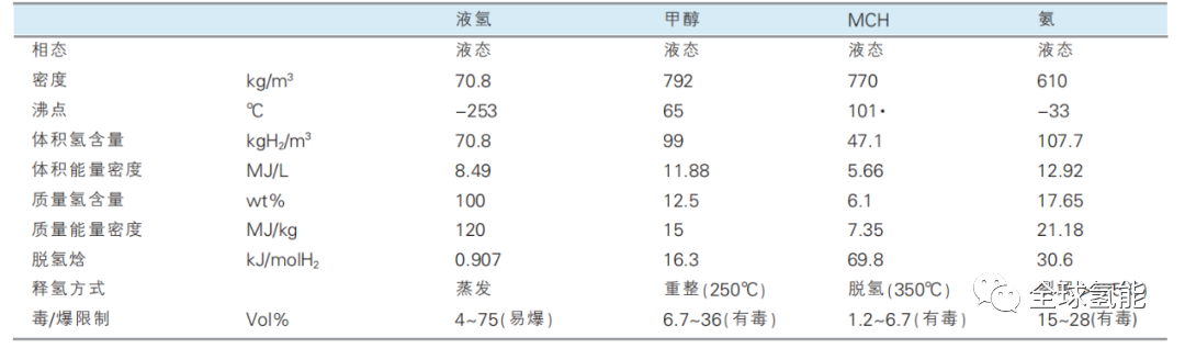 图 主要储氢载体的理化性质