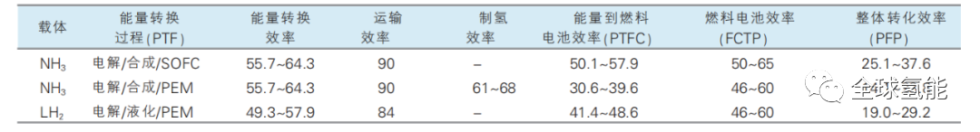 氨作为可行的氢储能材料确实具有巨大潜力,但与液氢相比,使用氨作为氢载体的运输体系在整体的电-燃料-电(PFP)效率方面没有明显优势。另外,裂解过程对大量能量的需求限制了其未来的应用。此外,净化和压缩后的氢气用于供应燃料电池汽车的财务和能源成本都很高,其中投入的电能和热能成本难以通过其他方面的收益回收。