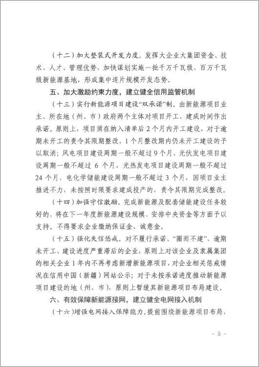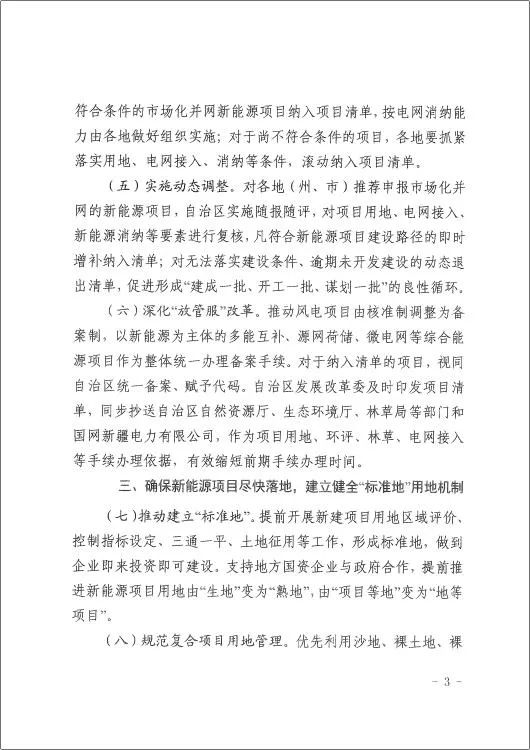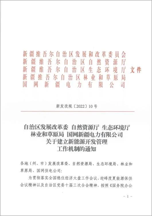 近日,新疆自治区发改委、自然资源厅、生态环境厅、林业和草原局、国网新疆电力有限公司五部门印发《关于建立新能源开发管理机制的通知》(新发改规〔2022〕10号),明确提出:推动风电项目由核准制调整为备案制。以新能源为主体的多能互补、源网荷储、微电网等综合能源项目作为整体统一办理备案手续。原文如下: