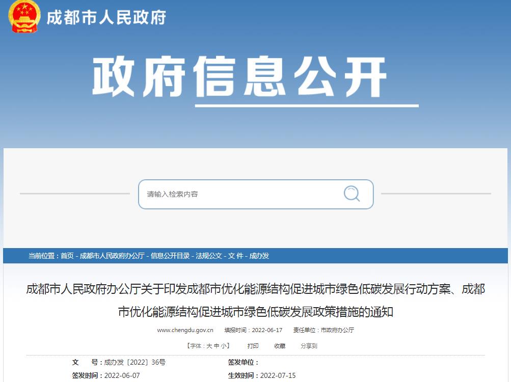 成都市优化能源结构促进城市绿色低碳发展政策措施