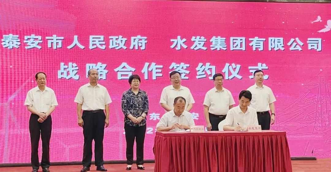 7月11日,泰安市人民政府与水发集团有限公司战略合作签约仪式在泰安市举行。泰安市委书记、市人大常委会主任杨洪涛出席,水发集团党委副书记、总经理刘肖军,泰安市委副书记、市长张涛出席并致辞,泰安市委常委、秘书长张颖主持仪式。