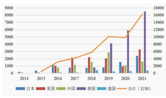 2022年北京冬奥会期间,共有1200多辆氢燃料电池汽车投运,并配备30多个加氢站,这是全球最大的一次燃料电池汽车示范。据统计,2021年,全球氢燃料电池汽车总销量1.6万辆以上,增长幅度达到六倍以上。受强劲补贴政策驱动,韩国市场延续了2020年的增长势头,全年共售出超8000辆氢燃料电池汽车,约占全球总销量的一半。