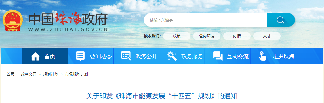关于印发《珠海市能源发展“十四五”规划》的通知