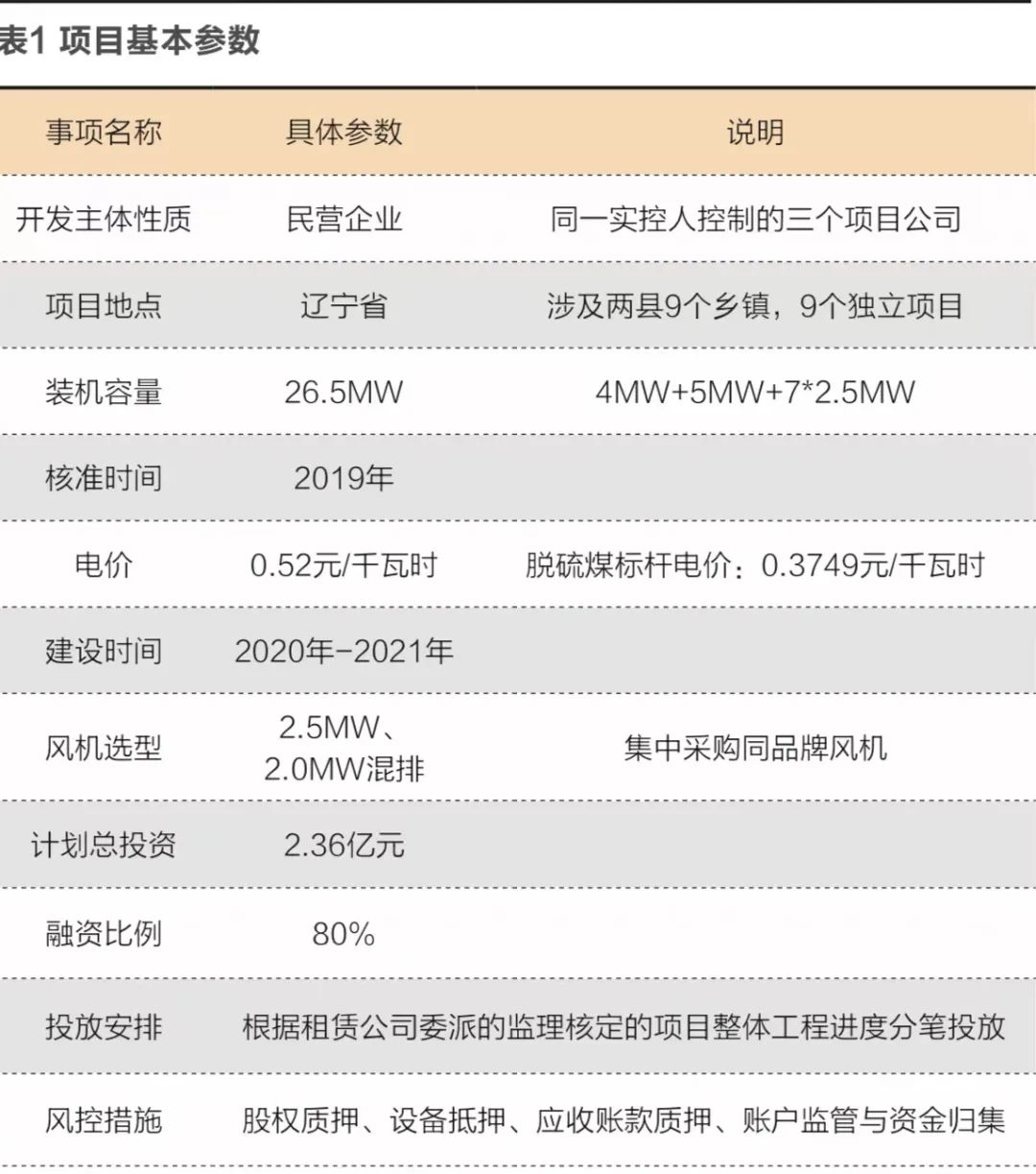 该项目以三个法人主体形成的联合承租人为融资租赁主体,工程项目总承包方负责项目风机、塔筒等设备(价值1.86亿元)的采购与项目建设,在建设期根据项目整体建设进度分笔付款,目前项目已全容量并网并收到首笔电费。