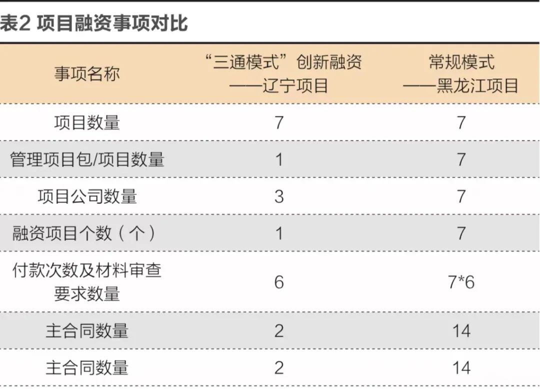 “三通模式”创新融资项目与同类型按照常规模式推进的项目相比,在融资机构内部推进效率大幅提升,项目风险得到有效控制;同时由于风险、成本匹配及项目规模效应的原则,解决融资难的同时有效缓解融资贵问题。