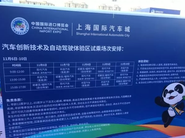 本届进博会期间,在国家会展中心北广场东侧新增的室外展场设置了汽车创新技术及自动驾驶体验区,现代汽车、丰田汽车、福特汽车、诺基亚等4家企业带来了氢能源汽车、高性能汽车、自动驾驶汽车、5G远程控制汽车共12辆车,观众可以上车试乘体验,了解国外汽车领域最新的产品及技术,感受未来驾驶的乐趣。