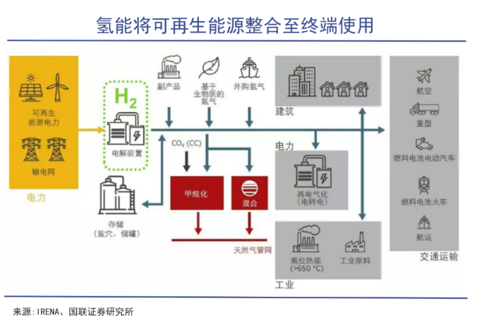 其次,理想状态下,氢能将成为各种可再生能源的“储能-互联”载体。