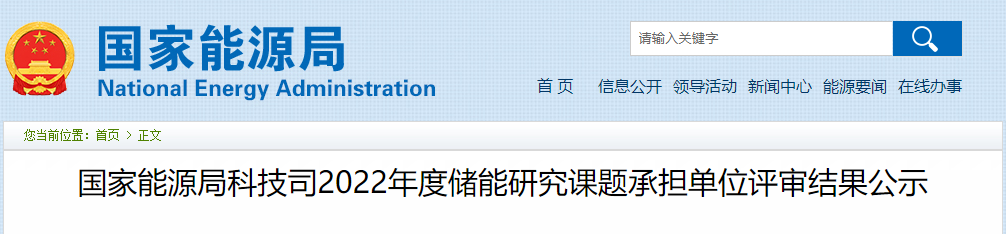 国家能源局科技司2022年度储能研究课题承担单位评审结果公示