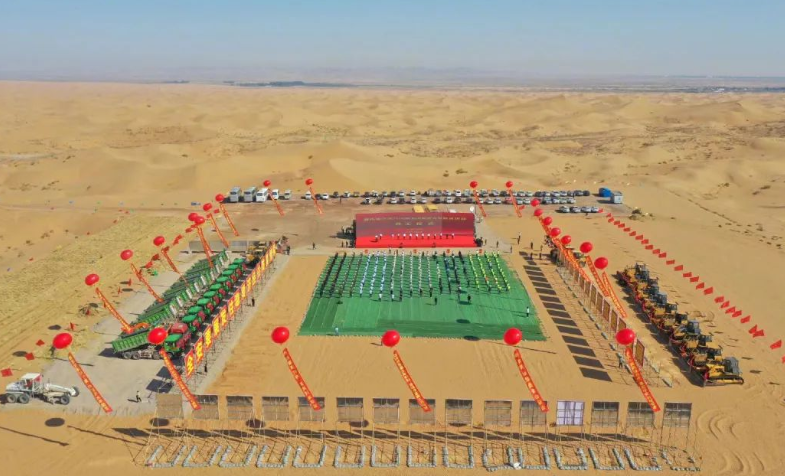 腾格里沙漠3GW新能源基地光伏复合项目开工。