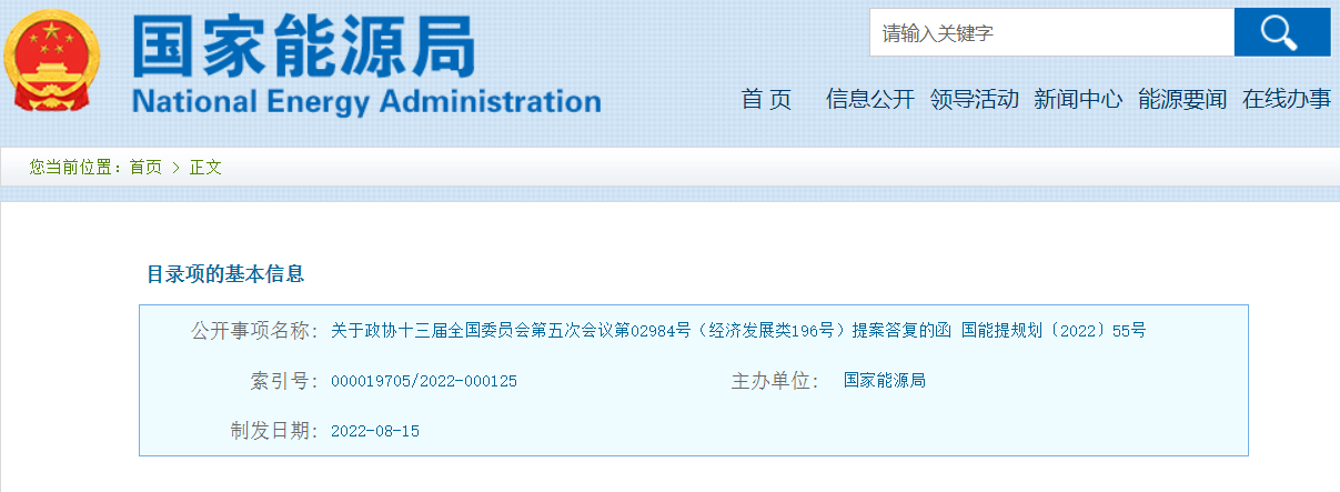 国家能源局近日发布关于政协十三届全国委员会第五次会议第02984号(经济发展类196号)提案答复的函。