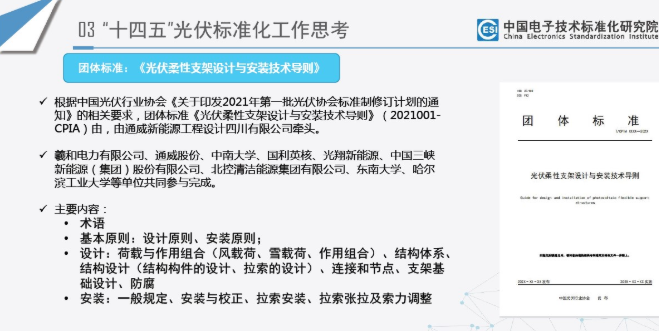 对于柔性支架相关的标准制定工作,裴会川指出,目前有团体标准《光伏柔性支架设计与安装技术导则》(2021001- CPIA)正在评审中,后续将有序推进相关柔性支架标准制定工作,为行业技术发展把好关。