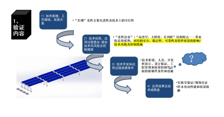 本次柔性支架验证采用技术评审和样本电站检测评估模式,验证内容详见下图。