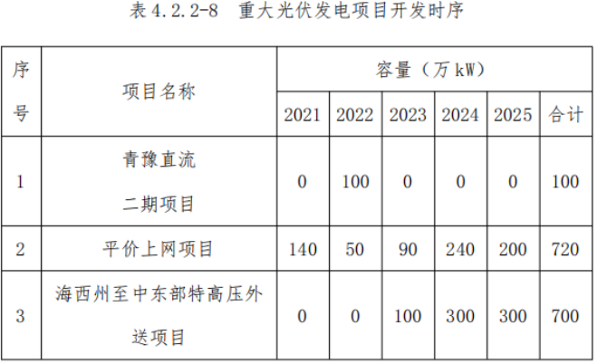 根据规划,海西州“十四五”新能源发电重点建设光伏项目包括:海西州至中东部特高压外送光伏项目700万千瓦、青豫直流特高压二期项目光伏项目100万千瓦、平价光伏项目480万千瓦、德令哈光热项目25万千瓦、格尔木光热项目30万千瓦。