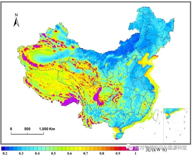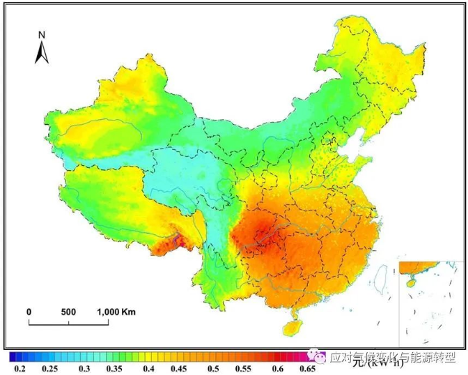 在固定上网电价时代,我们衡量一个风电场或一个光伏电站的收益,通常是用该新能源电站20年或25年全生命周期的发电量乘以上网电价得到。由于某地的上网电价是恒定的,所以我们只需要“追风逐日”,选择那些年平均风速高或倾斜面总辐射大的地区来布设风光电站。对专业人士而言,这套流程贯穿于新能源前期规划的宏观选址和微观选址。简单地说,这个阶段,我们关注的是新能源的空间属性,即哪个地方的风好,哪个地方的光足。如果我们比别人优先找到这些风光资源禀赋好的地区,就能赚到更多的钱(图1~图4)