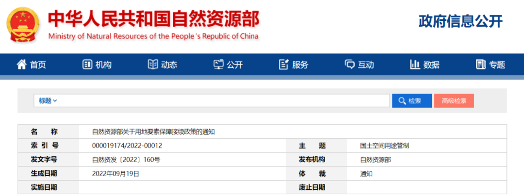 自然资源部发布《关于用地要素保障接续政策的通知》原文如下: