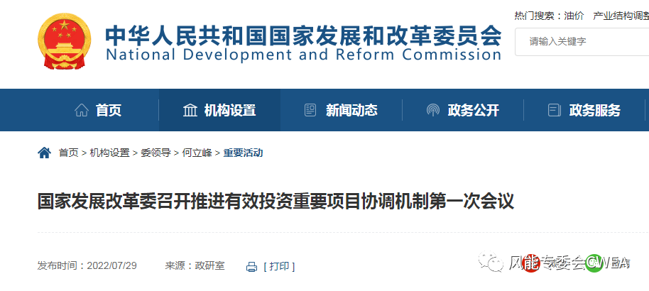 今年7月27日,国家发改委召开推进有效投资重要项目协调机制第一次会议。会议要求,协调机制各成员单位要突出当前工作重点,更好发挥协调机制作用。一是要选准选好项目。更好发挥“四两拨千斤”的作用,带来更多投资拉动,吸引更多社会投资,形成更多实物工作量。优先支持基础设施重点领域项目,支持规划内的项目,支持前期工作成熟的项目。二是要尽快投放资金。坚持“资金、要素跟着项目走”的原则,尽快向符合条件的项目投放资金。抓紧商请商业银行发放项目配套贷款,着力破解要素保障、审批办理等问题,做好项目前期工作和土地、用能、环评等要素保障。三是要加快开工建设。抢抓三季度施工旺季的时间窗口,提高工作效率,尽快形成实物工作量。在项目实施过程中,符合要求的尽可能多地通过以工代赈帮助当地群众就近务工,同时严格规范项目管理。
