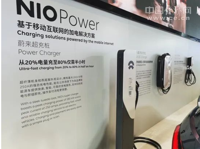 而在蔚来汽车展台上,其也展出了多款充电桩产品,包括体积小功率强适合家用充电的7kW交流充电桩;三倍充电速度,在家就能急速快充的20kW直流快充桩;20%电量充至80%仅需半个小时的蔚来超充桩。