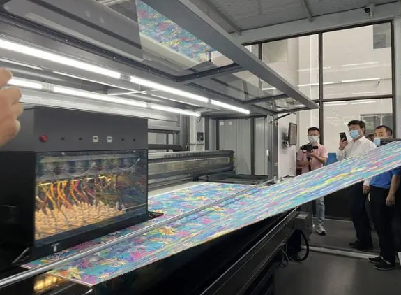 在位于邹平的山东魏桥特宽幅印染有限公司,记者看到,一台印染机器像“喷墨式打印机”一样,高精准喷头在白色的布上穿梭,客户个性化定制的花色就牢牢地印在了布匹上。