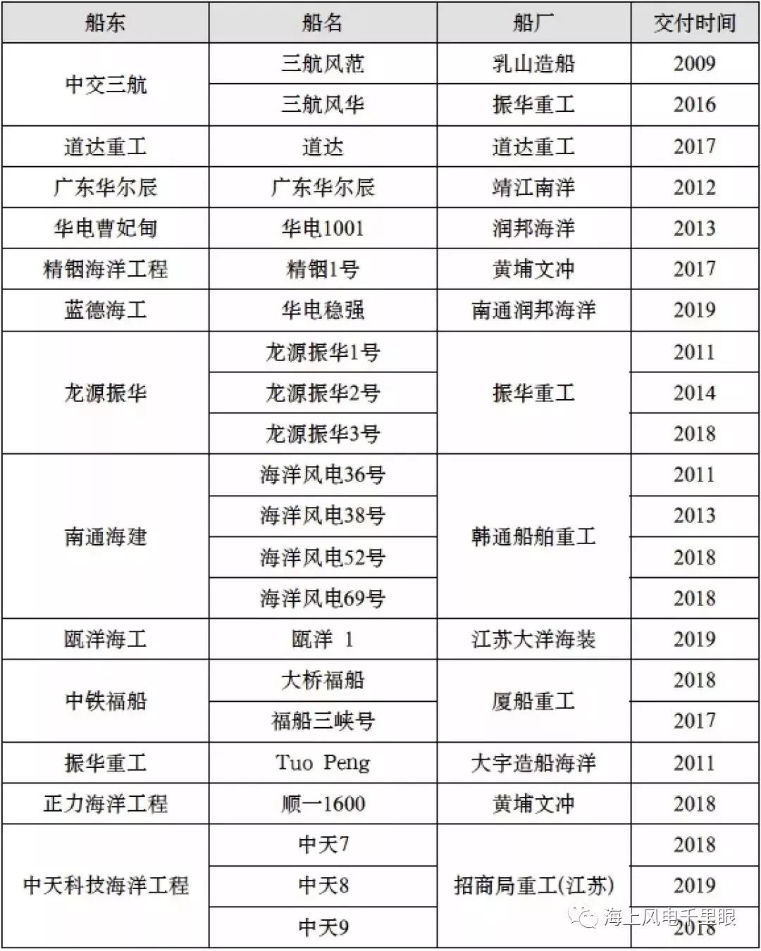 国内投入使用的海上风电安装船: