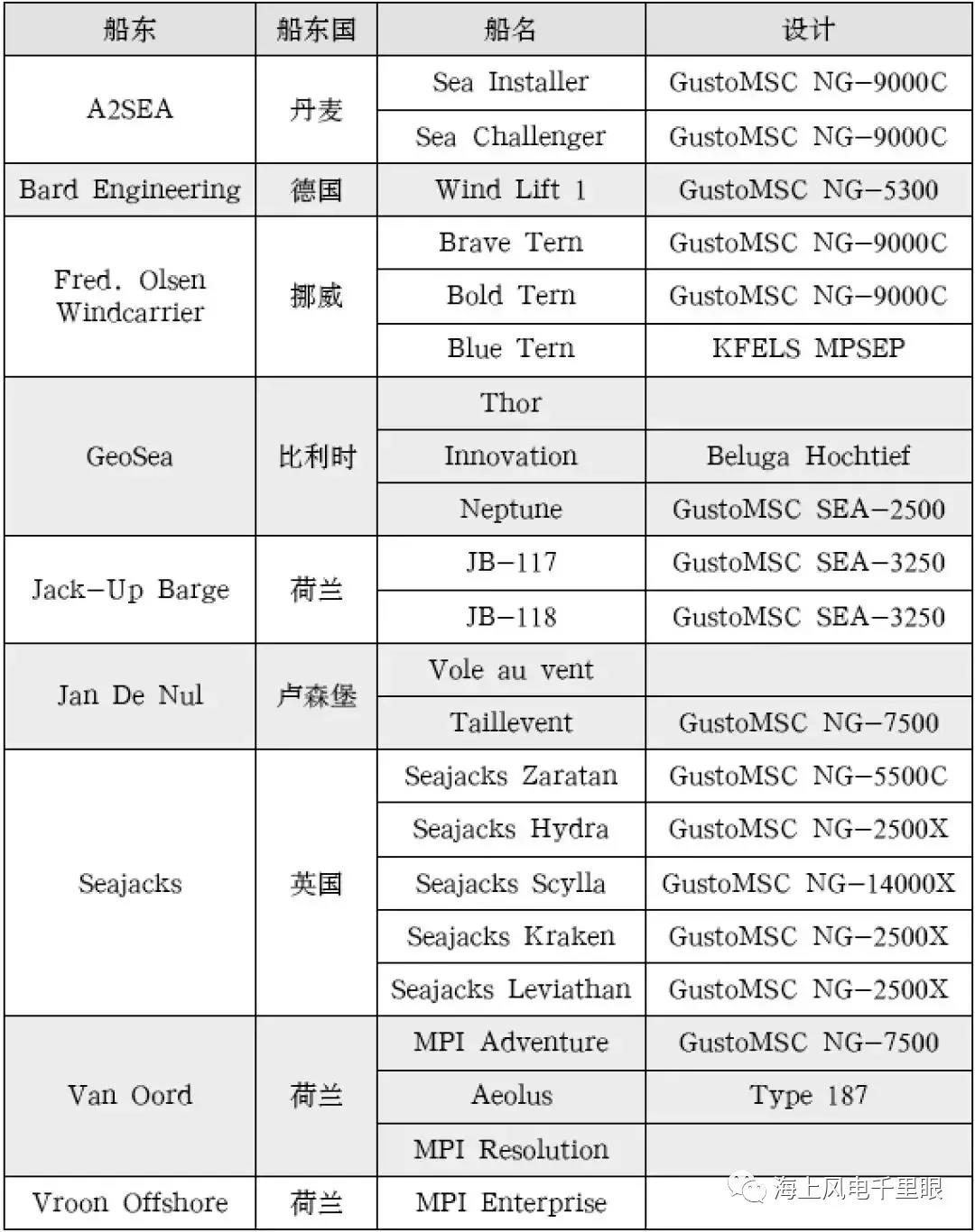欧洲海上风电安装船船队情况: