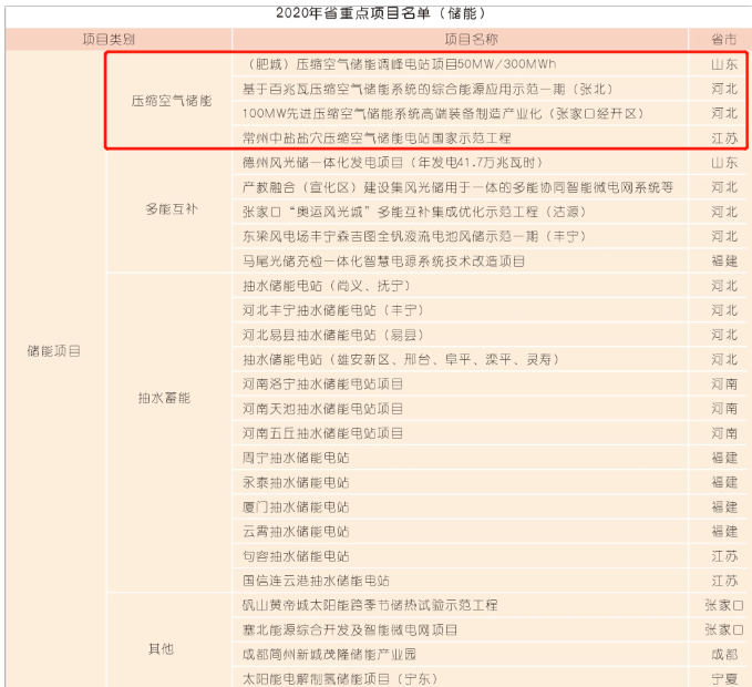 2019年7月份,由发改委办公厅等四部门联合制定了《贯彻落实<关于促进储能技术与产业发展的指导意见>2019-2020年行动计划》,提出了六大部分共16项具体措施。在先进储能技术研发方面,要求重点推进大容量压缩空气储能等重大先进技术项目建设,推动百兆瓦压缩空气储能项目实现验证示范。