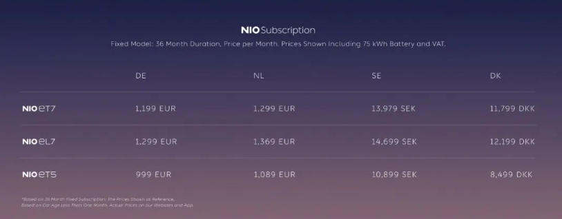 在欧盟四国的市场,蔚来用户将以订阅制获取用车服务,订阅期限从1个月至60个月不等,订阅周期越长,单月租金越低。