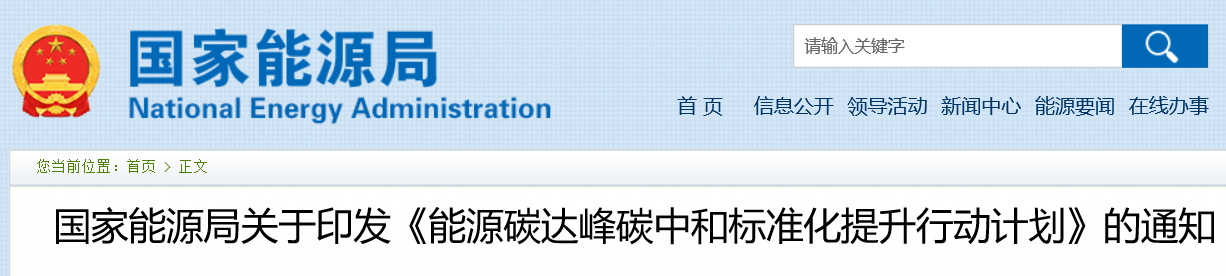 为深入贯彻党中央、国务院关于碳达峰、碳中和的重大战略决策,认真落实《中共中央 国务院关于完整准确全面贯彻新发展理念做好碳达峰碳中和工作的意见》《国务院关于印发2030年前碳达峰行动方案的通知》《中共中央 国务院关于印发〈国家标准化发展纲要〉的通知》,充分发挥标准推动能源绿色低碳转型的技术支撑和引领性作用,我局组织编制了《能源碳达峰碳中和标准化提升行动计划》,现印发给你们,请结合实际贯彻落实。
