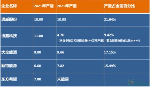 随着新建项目的落成,中国多晶硅市场的格局将再次生变。2021年的“硅料五巨头”的格局,正在朝着“两超多强”格局演化。