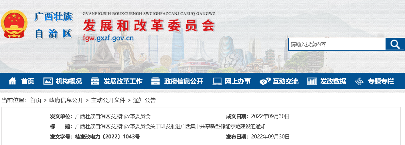 广西壮族自治区发展和改革委员会关于印发推进广西集中共享新型储能示范建设的通知