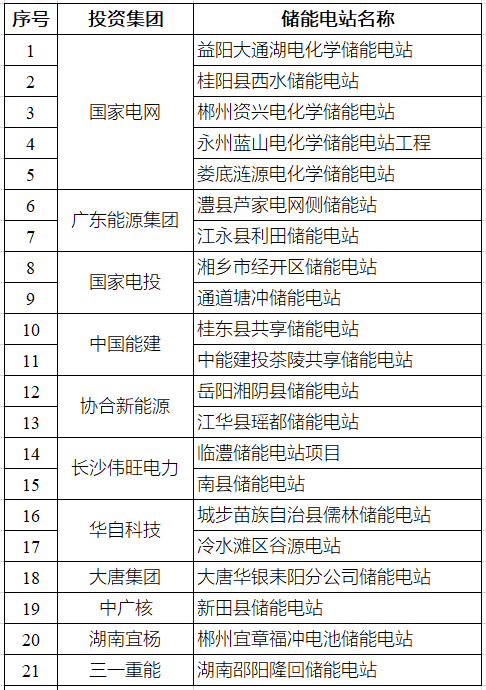 广东能源集团、国家电投、中能建、协合新能源、长沙伟旺电力、华自科技等,均投资两个储能电站。