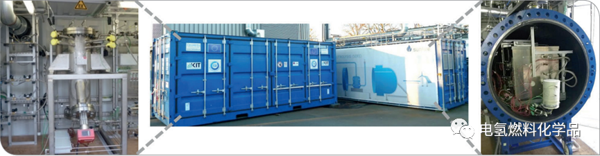 也采用移热的固定床,2级串联,德国卡尔斯鲁厄理工学院(KIT)提供甲烷化技术。这个项目采用高温电解槽SOEC,甲烷化的放热与SOEC的用热集成,从而理论上可以达到85%的总效率。该项目组织者为SUNFIRE公司,亮点是SOEC,不是甲烷化反应器。电解是在10kW SOEC中进行的,工作温度为800℃和15巴,而甲烷化反应器装填商业镍基催化剂,该工厂可调节负荷最低为在20%。反应热通过设定压力和相应温度的水蒸发带走,产生的蒸汽将被调节到所需的SOEC进水压力。该示范项目尽管并不是完全成功,但其最终达到了76%以上的能量效率是目前最高的,预计规模化后可达80%以上。
