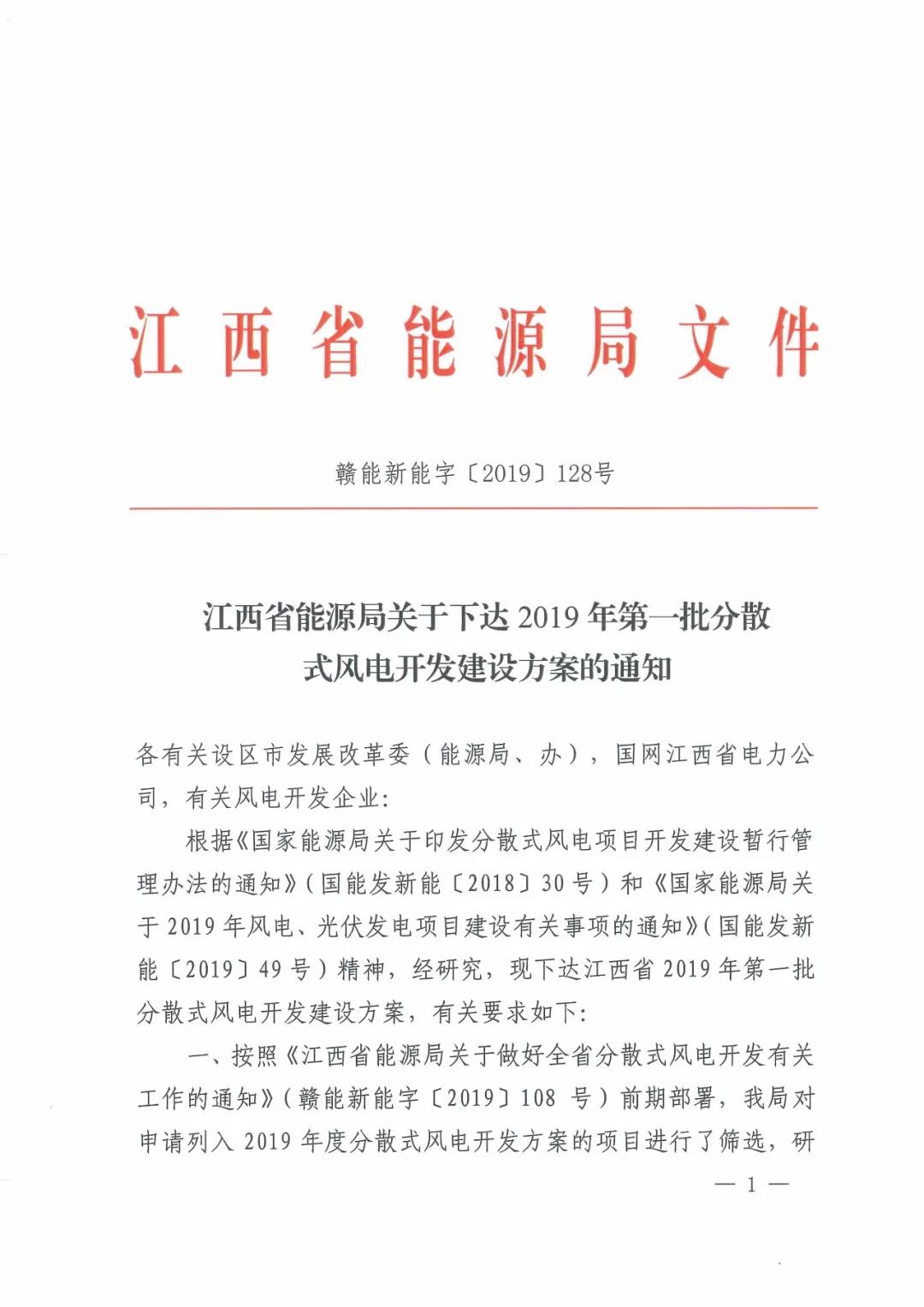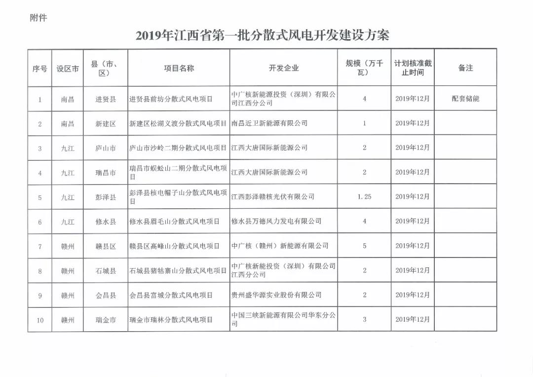 江西省能源局下达2019年首批分散式风电开发建设方案通知