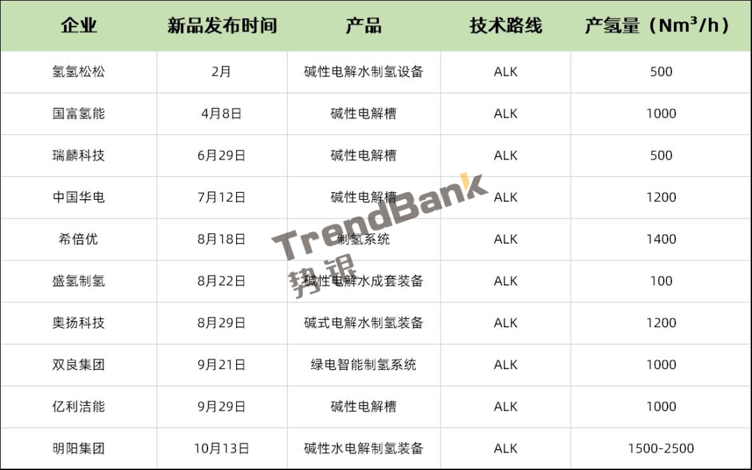 此前势银能链已对2022年1-8月的新品做了盘点,以下将介绍9月-10月中旬发布的新品电解制氢装备产品——