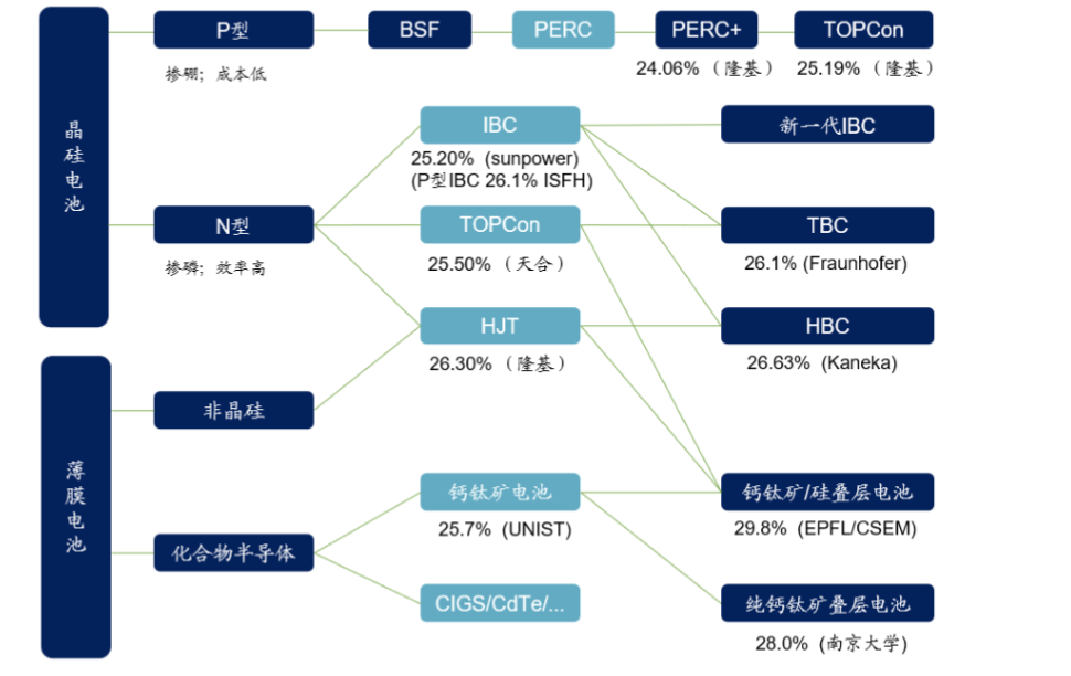 随着TOPCon、HJT、IBC等技术逐步成熟,逼近其光电转换效率理论极限,业界开始寻找新一代太阳能技术。