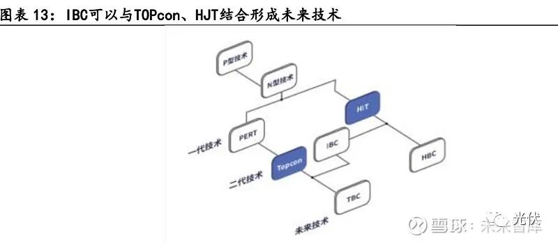 我们认为IBC是性能更优的电池,表现在其产品转换效率全球领先,温度系数较 低,无论是成组后功率,还是实际发电量均有较好的表现,尤其适用于高端分布式市 场,预计在欧洲高端分布式市场将会有优异的表现。IBC在技术上有比较好的兼容性,对于IBC的布局有利于下一代技术的延伸。TBC电池将TOPcon与IBC相结合,这种电池结构结合了IBC电流高的短路电流与 TOPCon 优异的钝化接触特性,因此能获得更高的电池效率。HBC是电池利用HJT电池结构和IBC结合,形成的太阳能电池结构,这种电池结构结合了IBC 电池高的短路电流与 HJT 电池高的 开路电压的优势,因此能获得更高的电池效率。我们认为,量产效率26%以上的电池需要IBC技术与HJT/TOPcon相结合,当前阶段,技术的积累将具有明显的“滚雪球”效应,对于IBC的布局将成为一体化企业的先发优势。