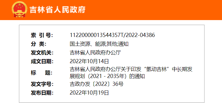 《“氢动吉林”中长期发展规划(2021-2035年)》已经省政府同意,现印发给你们,请认真贯彻执行。