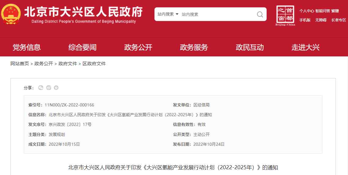 北京市大兴区人民政府关于印发《大兴区氢能产业发展行动计划(2022-2025年)》的通知