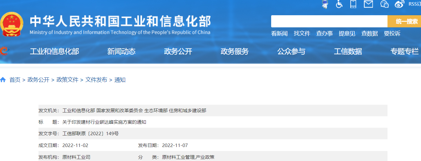四部门印发建材行业碳达峰实施方案